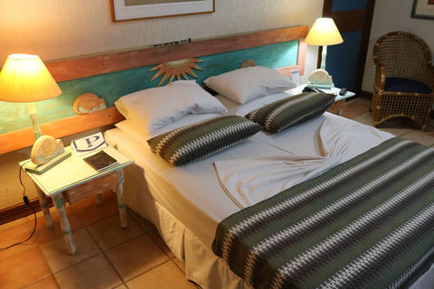 O bangalô é composto por varanda com rede, uma sala com dois sofás – cama de solteiro, banheiro, tv, frigobar e ventilador de teto, mais um quarto com cama de casal com outro banheiro, outra tv, ar-condicionado e ventilador de teto.